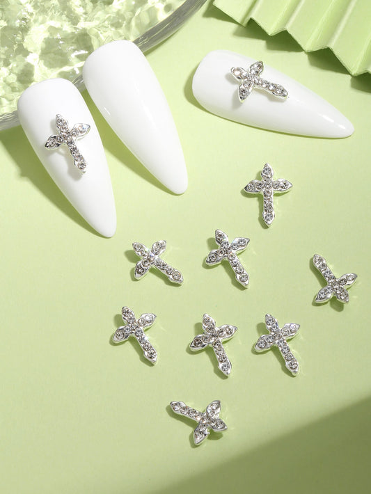 10pcs Rhinestone Cross Design Nail Art Charm