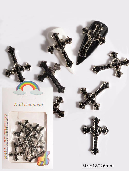 10pcs Black Cross Rhinestone Nail Charm