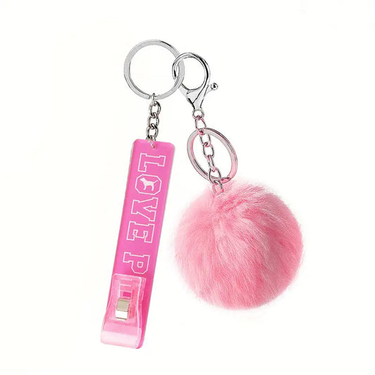 1pc Cute Pom Pom Keychain Clip pull card out ATM Card Extractor