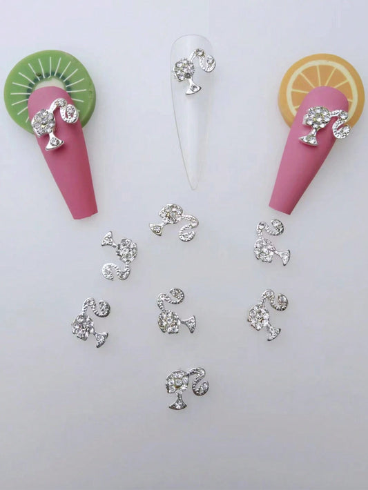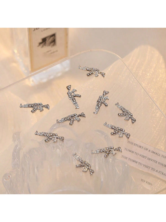 10pcs Silver Color Rhinestone Decor Ak-47 Gun Nail Charm